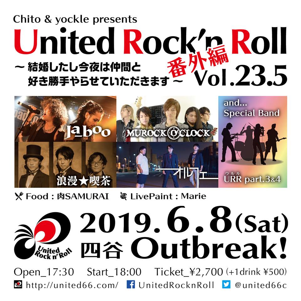 出演者 Ja-boo MUROCK O’CLOCK オルフェ 浪漫☆喫茶 URR(ウルル) Food_肉SAMURAI Live paint_MARIE OPEN 17:30 / START 18:00