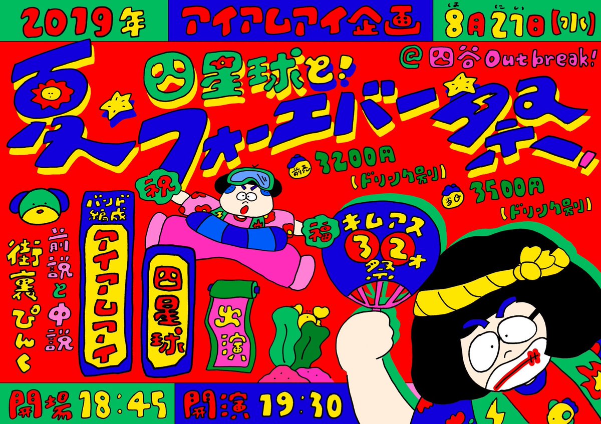 出演者 アイアムアイ(バンド編成) 《前説と中説》 街裏ぴんく 四星球 OPEN 18:45 / START 19:30