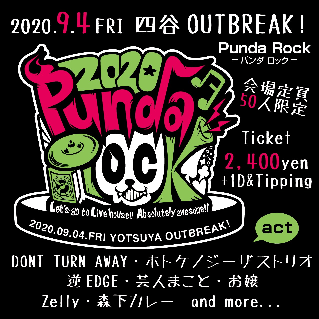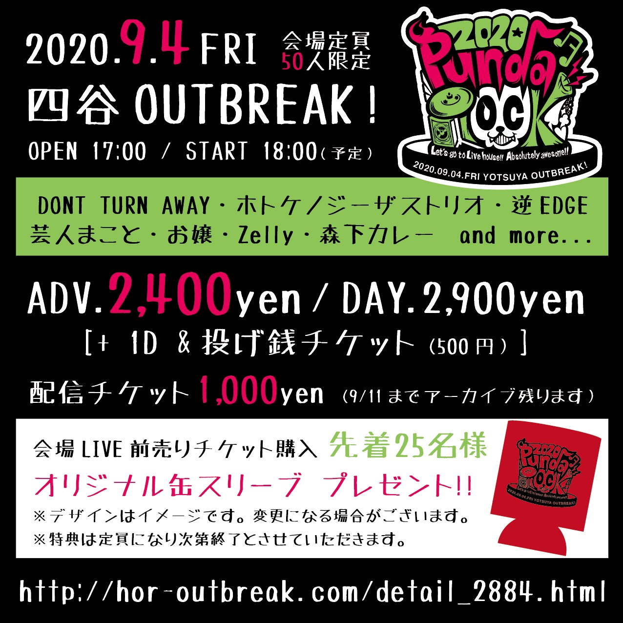 出演者 ホトケノジーザストリオ Dont Turn Away 逆EDGE 芸人まこと お嬢 Zelly(ゼリー) 森下カレー DJ INOMATA OPEN 17:00 / START 18:00 ADV / 2,400円 DAY / 2,900円