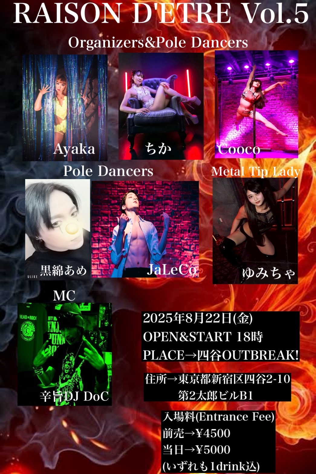 OPEN 18:00 / START 18:00 予約4500円 / 当日5000円 いずれも1drink込
