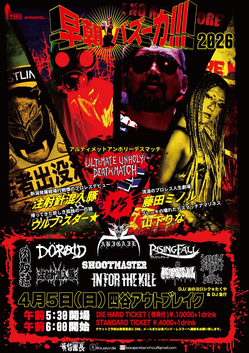 チケットご予約は黄昏番長、出演バンド、出演プロレスラーまで!!