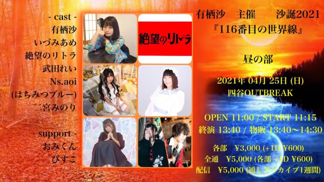 ※ 限定特典付きTICKETは手描き色紙イラスト&限定ブロマイド付の通しTICKETです。有栖沙扱いのみとなります。