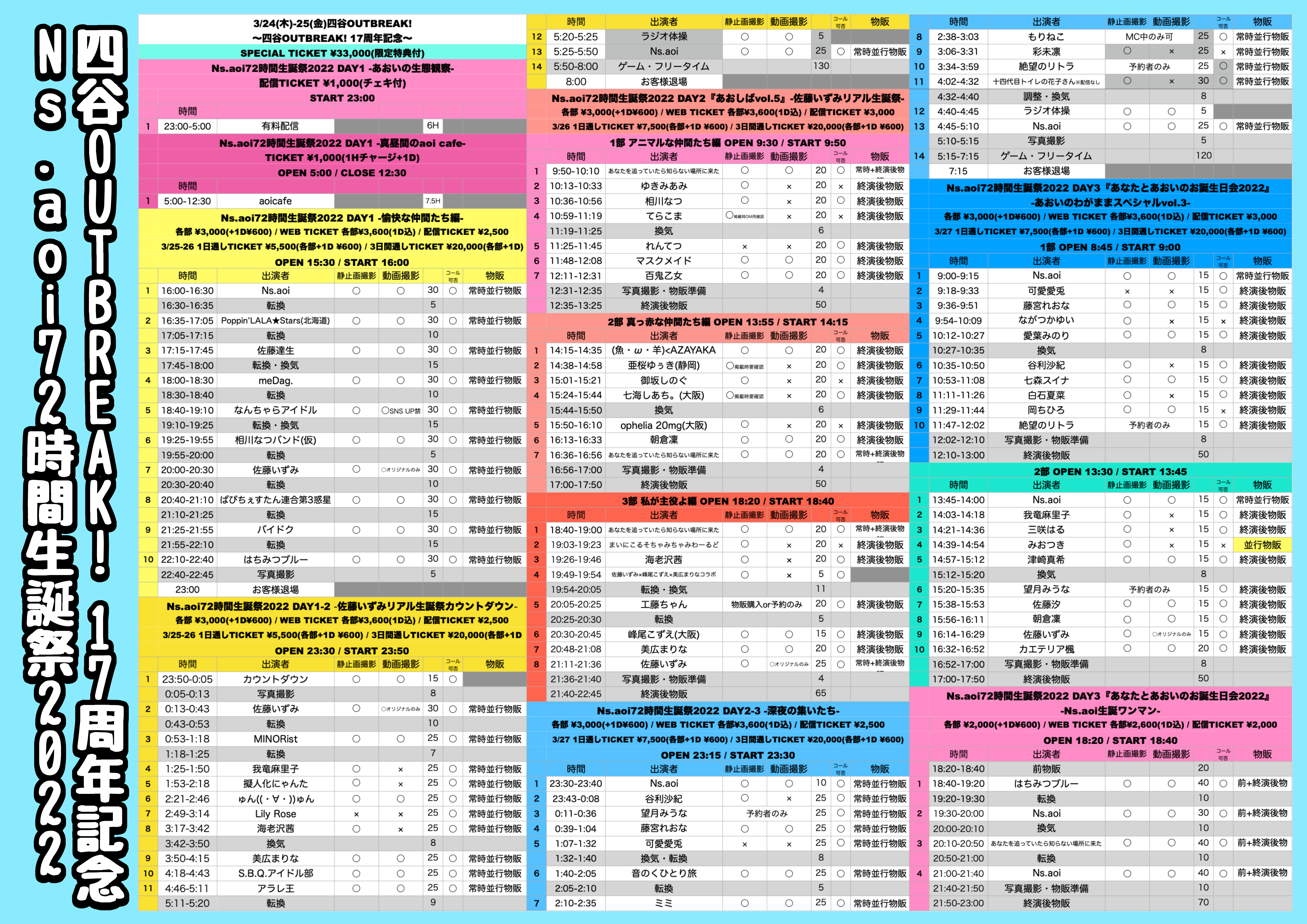 各部 ¥3,000(+1D ¥600) / Web TICKET 各部 ¥3,600(1D込) / 配信TICKET ¥3,000(2週間アーカイブ) / DD割 +¥1,000 / 3/26 1日通しTICKET ¥7,500(+各部1D ¥600) / 3日間通しTICKET ¥20,000 (+各部1D ¥600) / SPECIAL TICKET ¥33,000(限定特典付き)