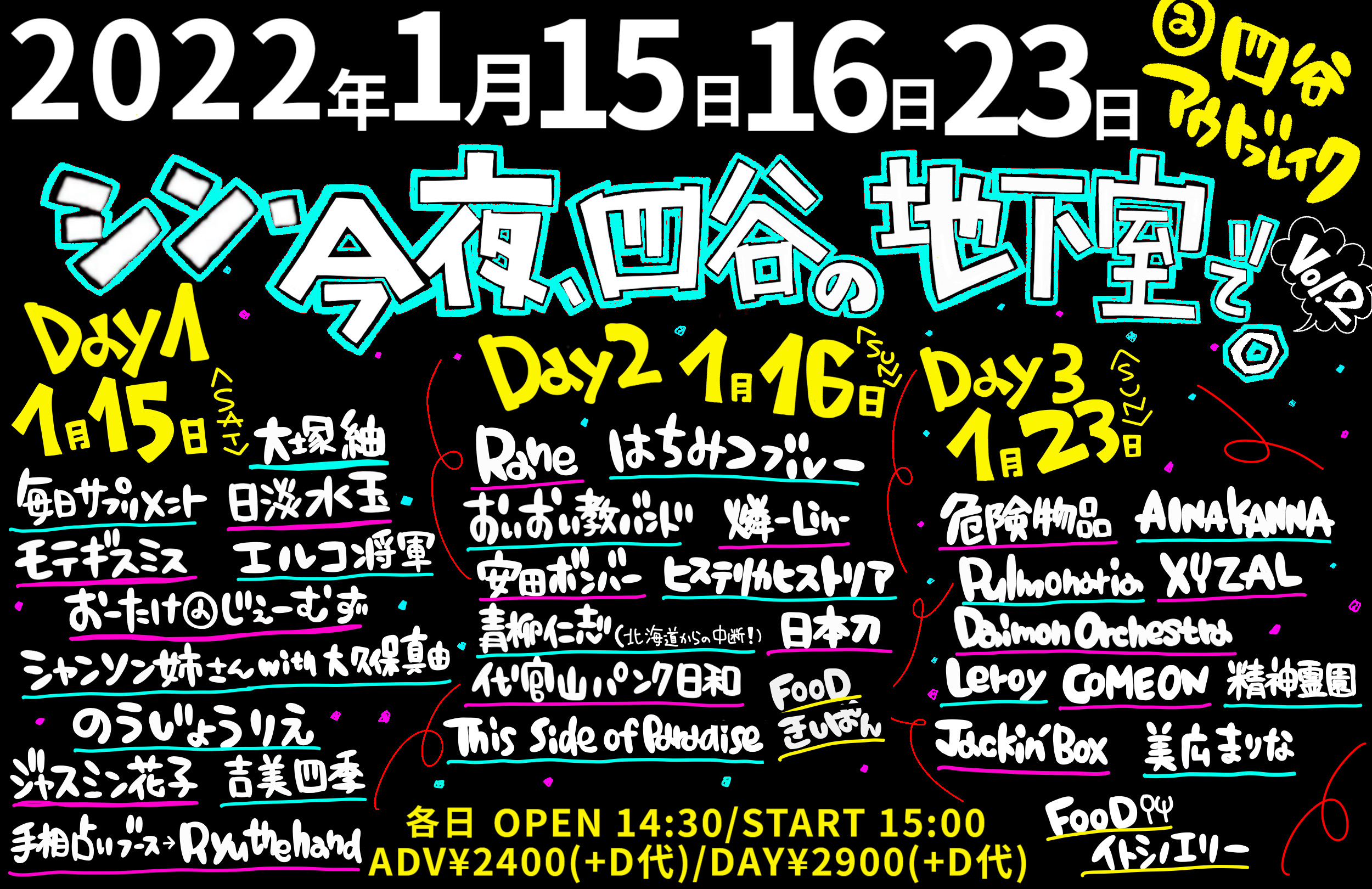 前売予約メールアドレス: outbreak428@gmail.com (各出演者への取り置きご予約も可能です)