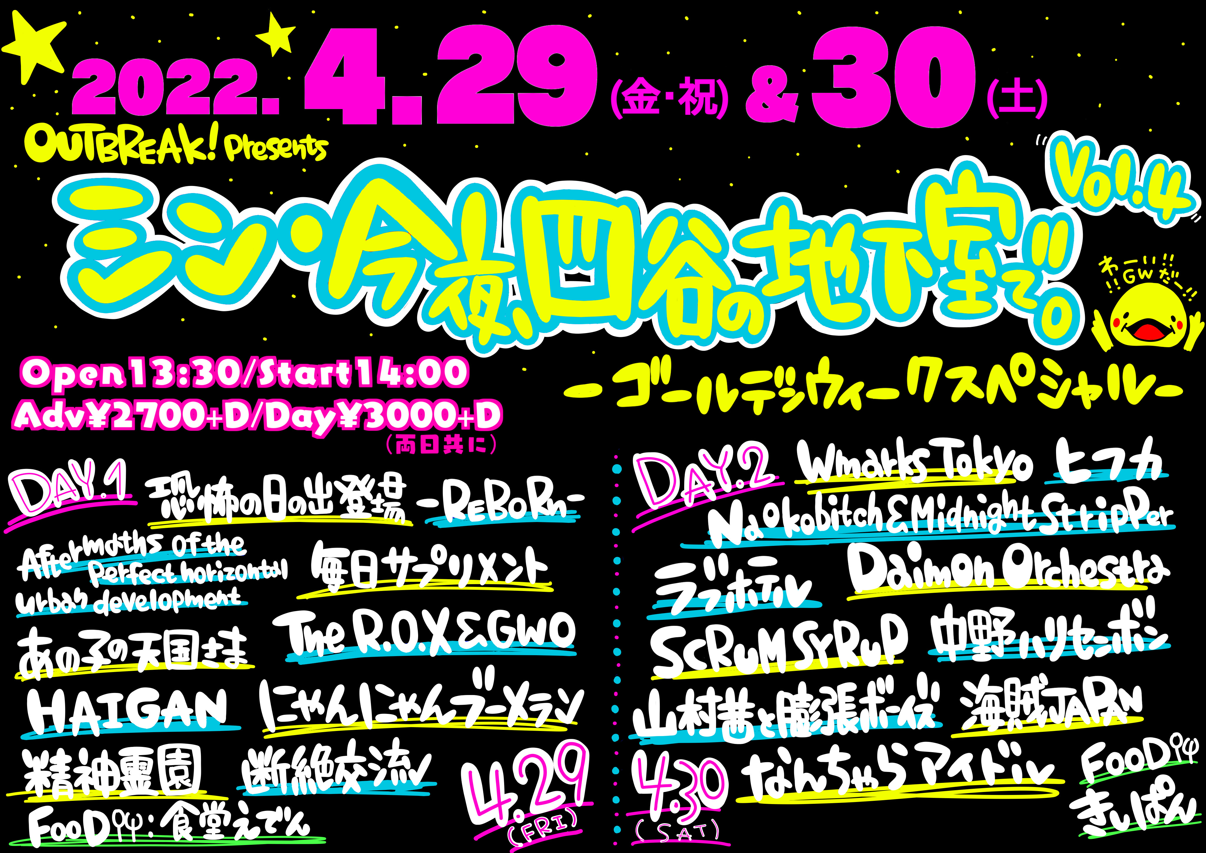 アウトブレイクがゴールデンウィークにお贈りする10組×2日間=全20組出演の祭り!!