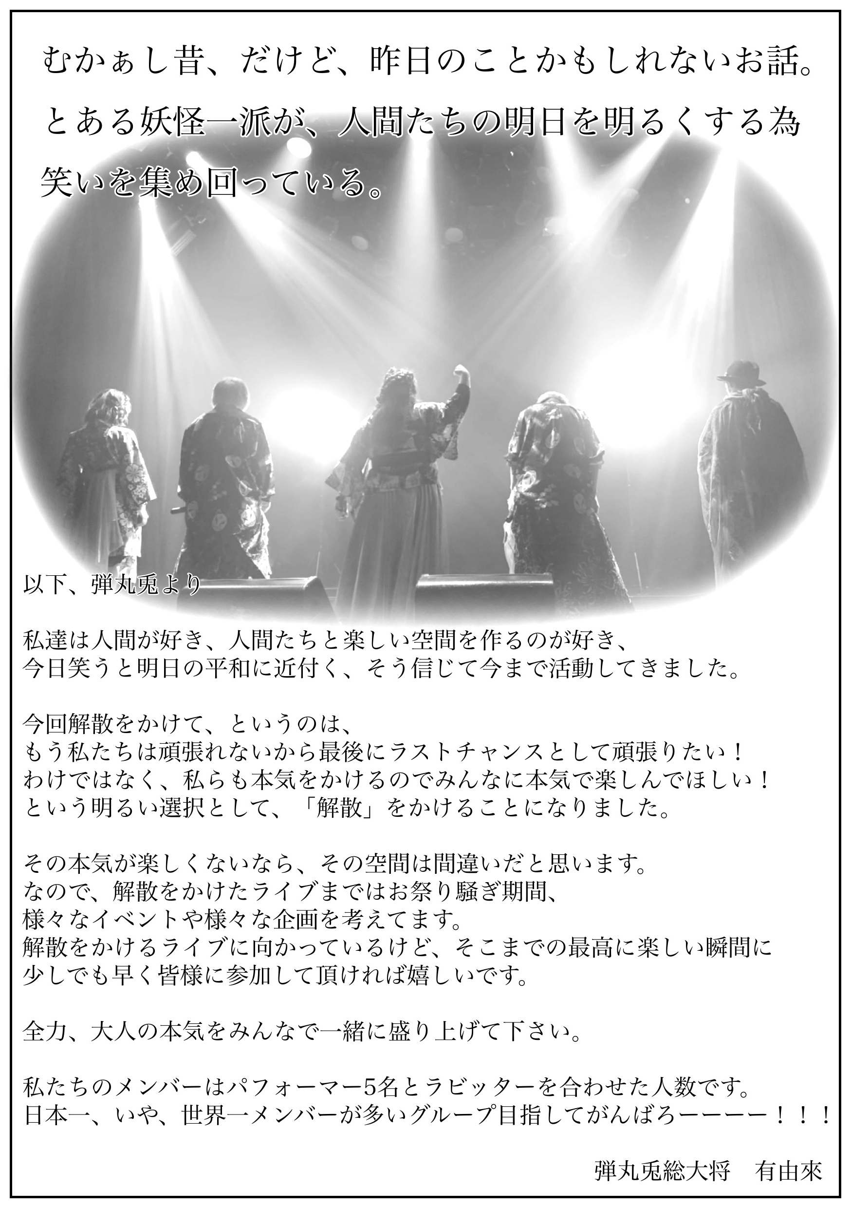 ※直接会場へは行けないが、『#弾丸兎ノ解散ヲ許スナ企画』を応援したい!参加したい!と思ってくださる方は、通販サイトにて2部配信チケット&オリジナルTシャツを期間限定販売しておりますので、よろしくお願い致します。
