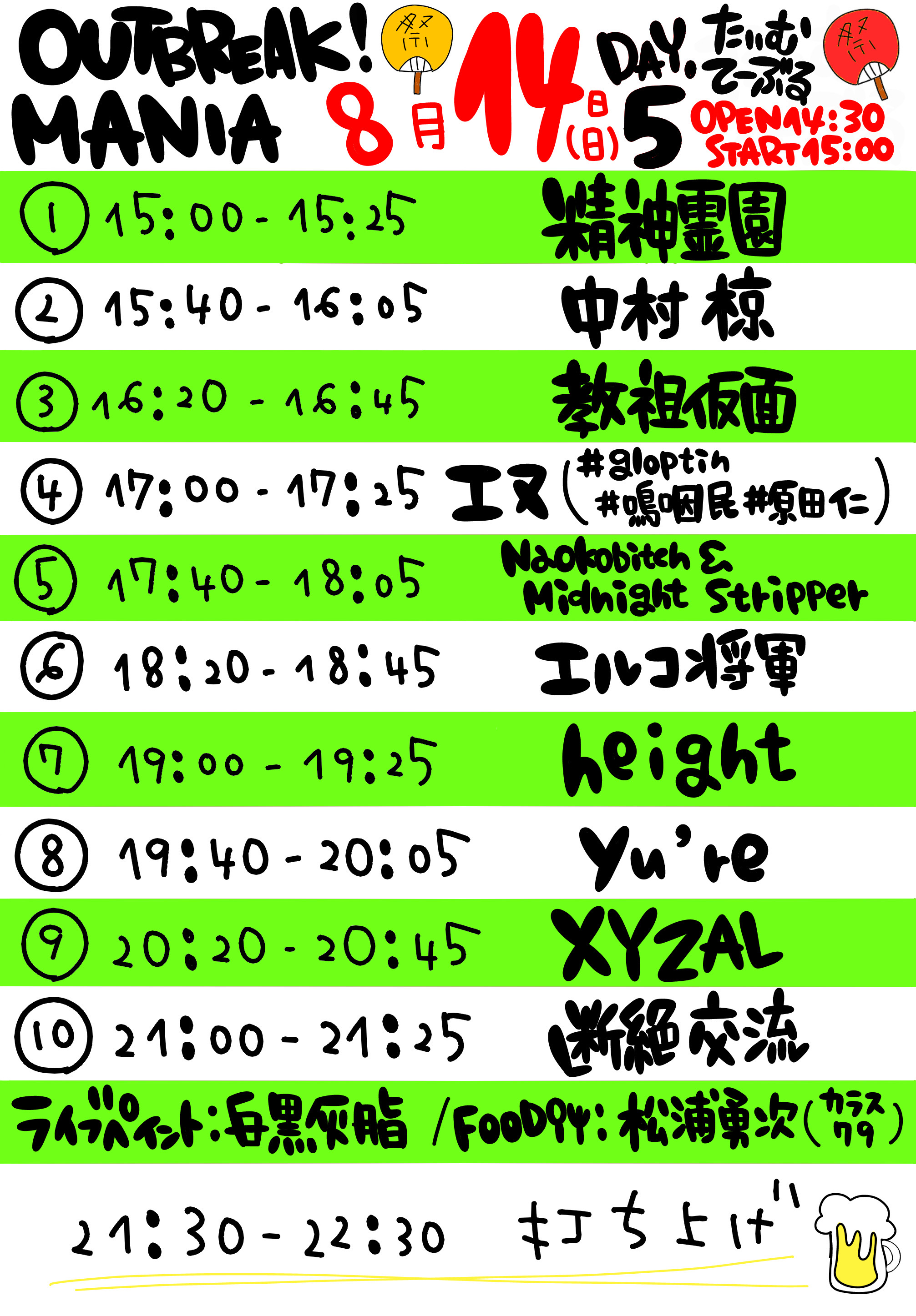 ご予約は各出演者またはOUTBREAKメールアドレスまで!!